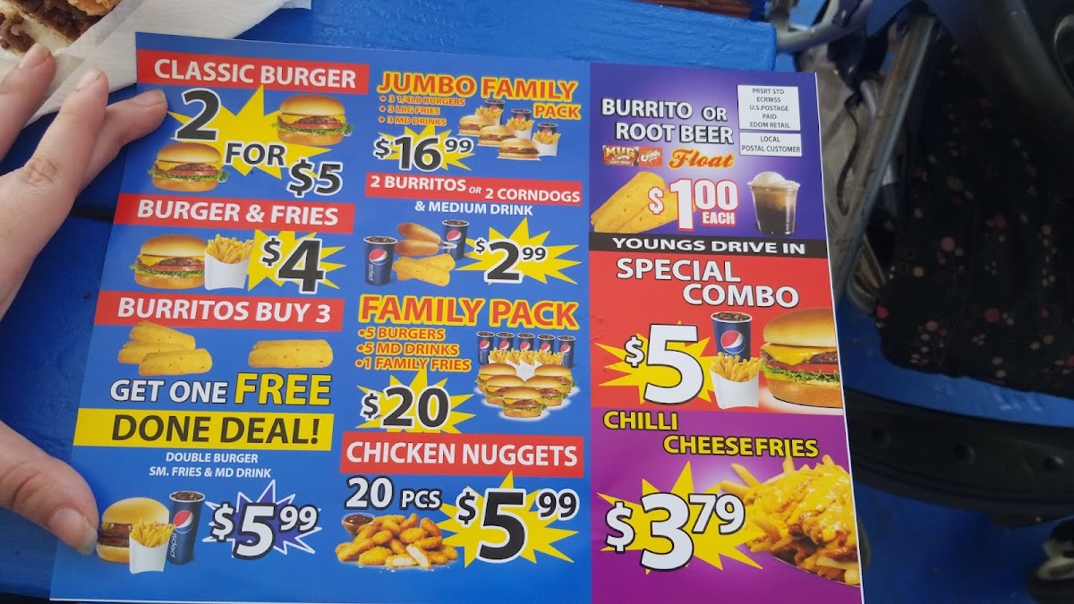 Welcome to Young's Drive-In, a cherished hamburger restaurant located in Bakersfield, CA. Here, nostalgia meets flavor in an inviting atmosphere. The menu features a tantalizing selection of burgers, sandwiches, and desserts that caters to all cravings. Indulge in the hearty Philly Steak or the tangy Pastrami—each crafted with fresh ingredients for maximum taste. The Spicy Chicken and Grilled Chicken sandwiches promise a zesty kick, while the array of ice creams and milkshakes, from Snickers to Butterfingers, offer sweet reprieve. Customers rave about the Cali Burger and the generous, budget-friendly portions. With excellent service that feels like family, Young’s stands out as a classic drive-in, where each visit is a delightful experience, echoing with the joy of satisfying meals and friendly faces.